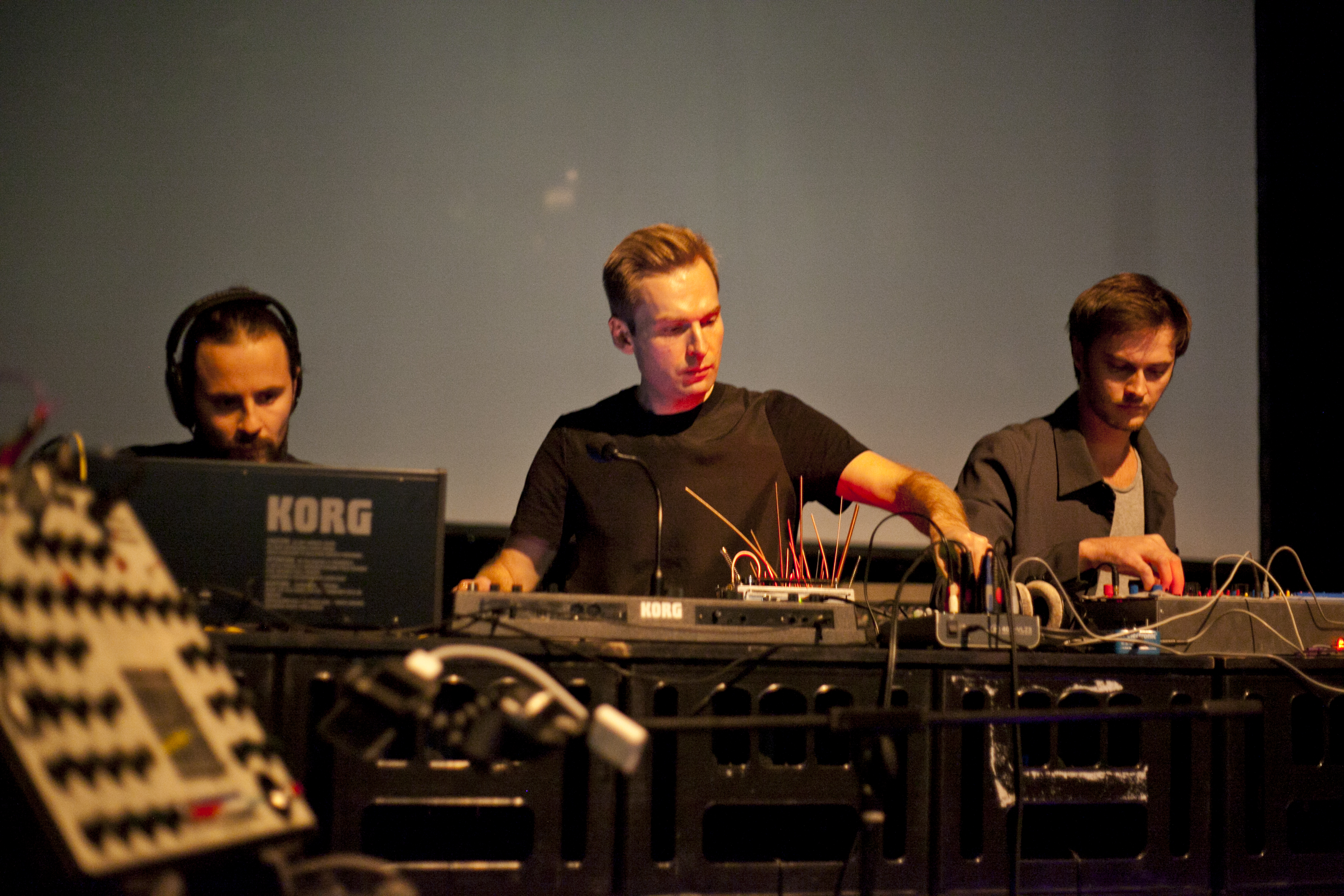The trio has radically reclaimed their synthesizers for spontaneity. Exploiting the tendency of analogue models of their instruments to betray reasonable expectations, they runs tightropes between control and accident. Collaborators are liable to find themselves on untried ground, dependent upon sharp reflexes and tangential intuitions.